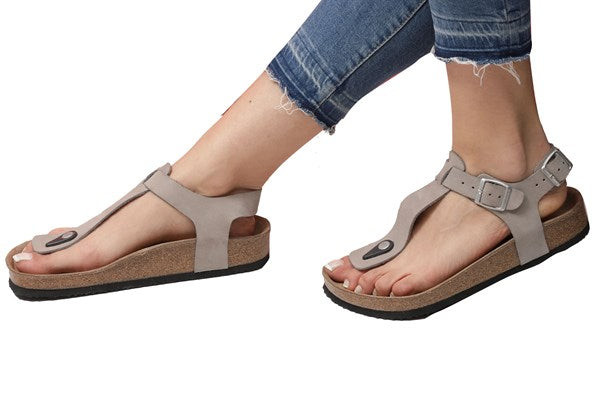 Women's Anatomical Natural Footbed Stone Color Leather Sandals