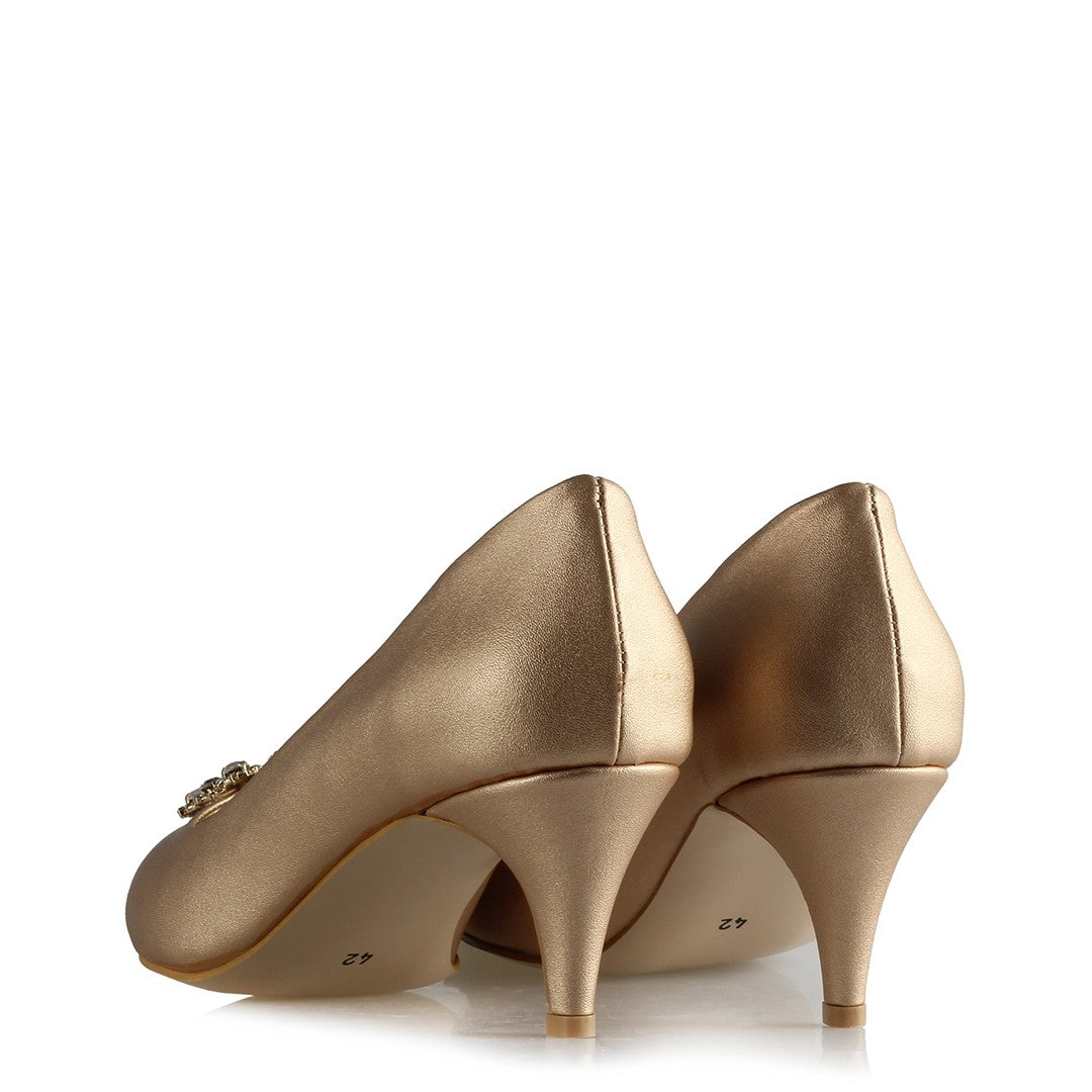 Women's Gemmed Buckle Matte Gold Heeled Shoes