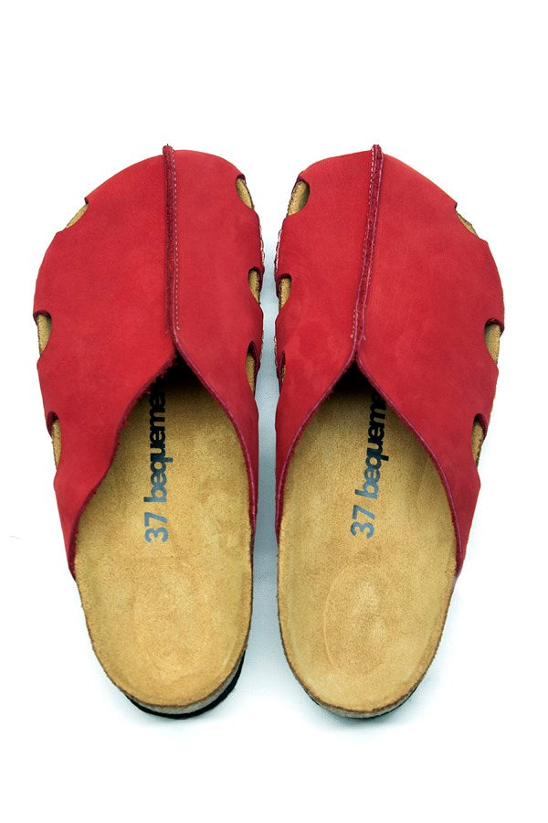 Unisex Anatomical Natural Footbed Red Leather Slippers