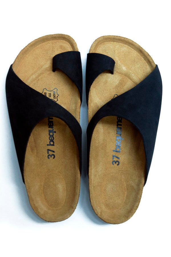 Women's Anatomical Natural Footbed Black Leather Slippers