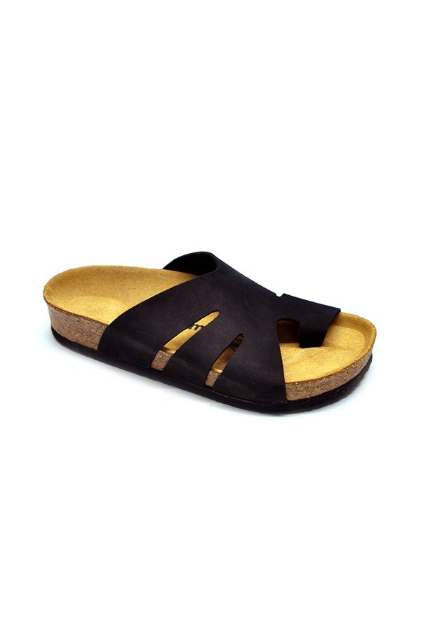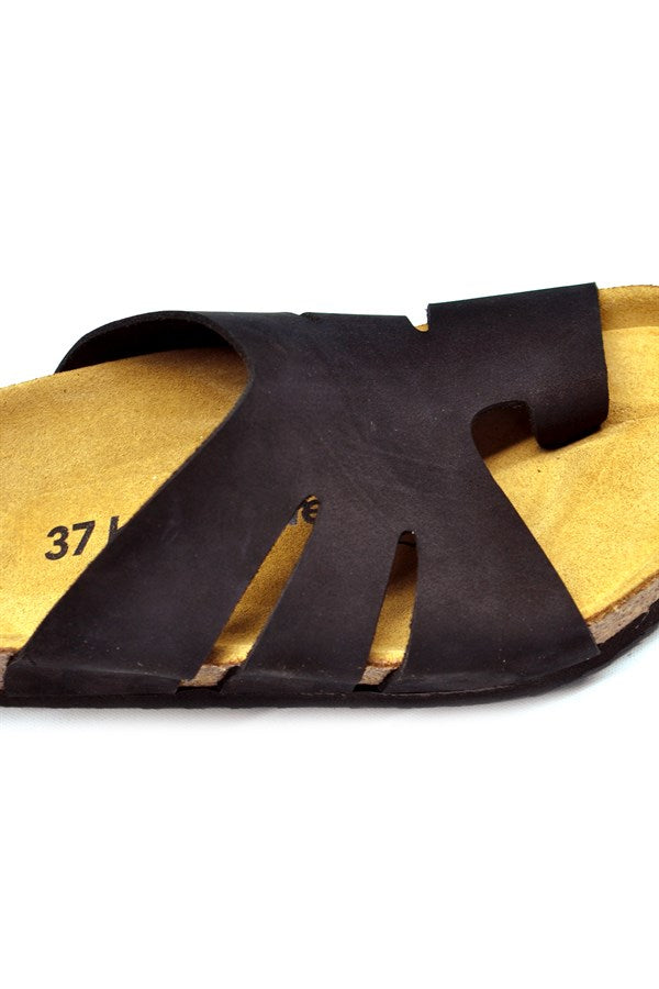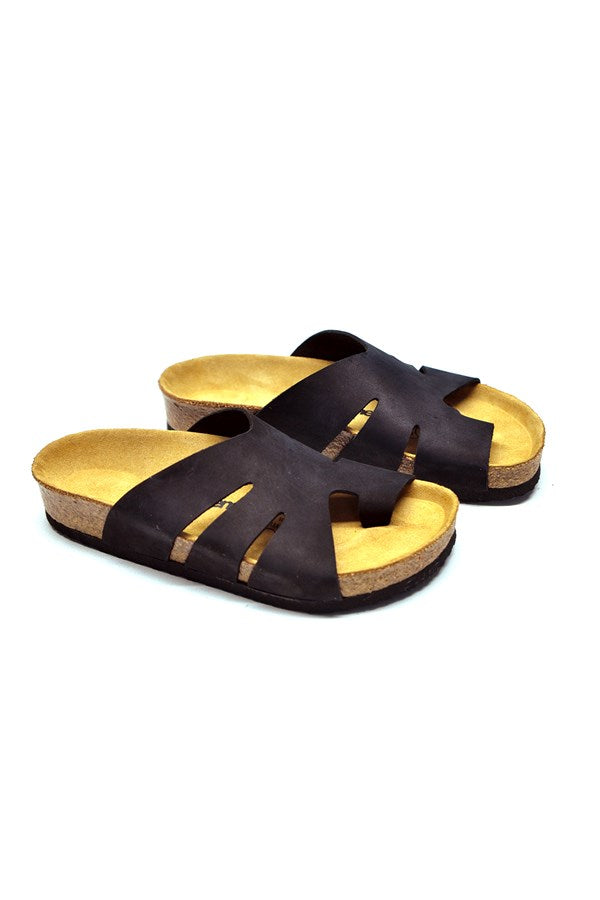 Women's Anatomical Natural Footbed Black Leather Slippers