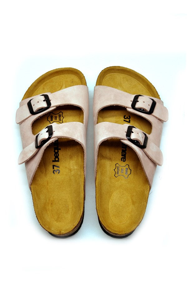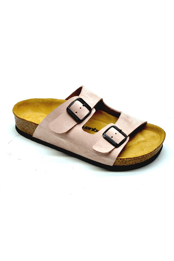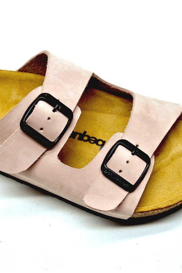 Women's Anatomical Natural Footbed Double Band Powder Rose Leather Slippers