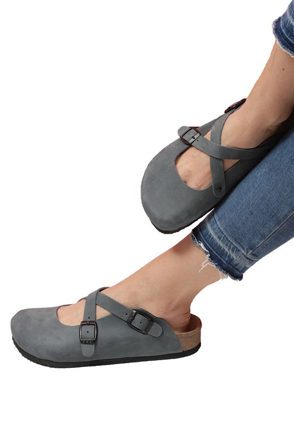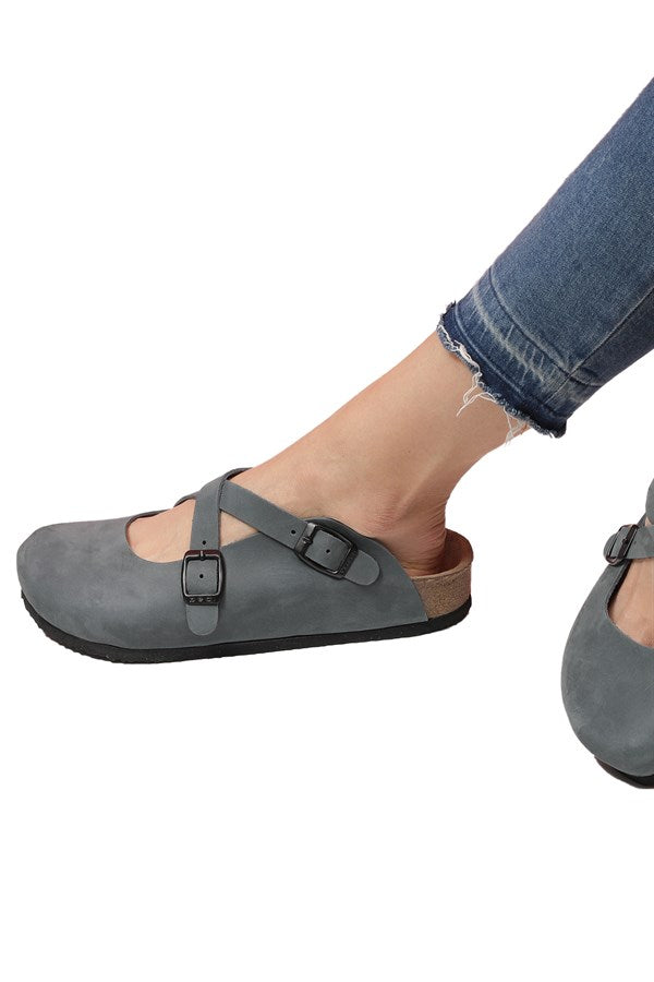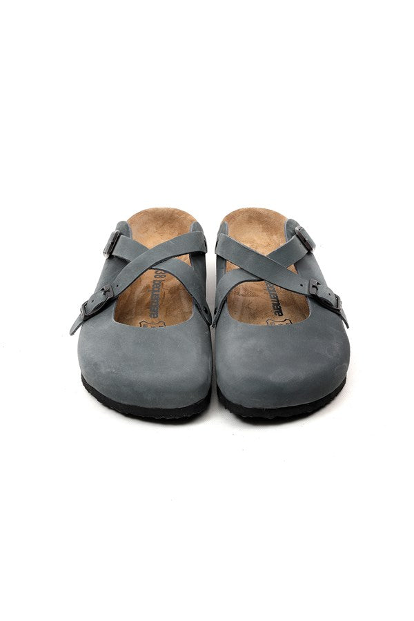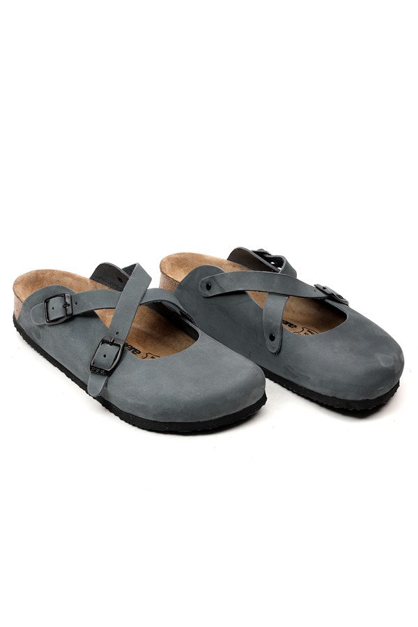 Women's Anatomical Natural Footbed Navy Blue Leather Slippers